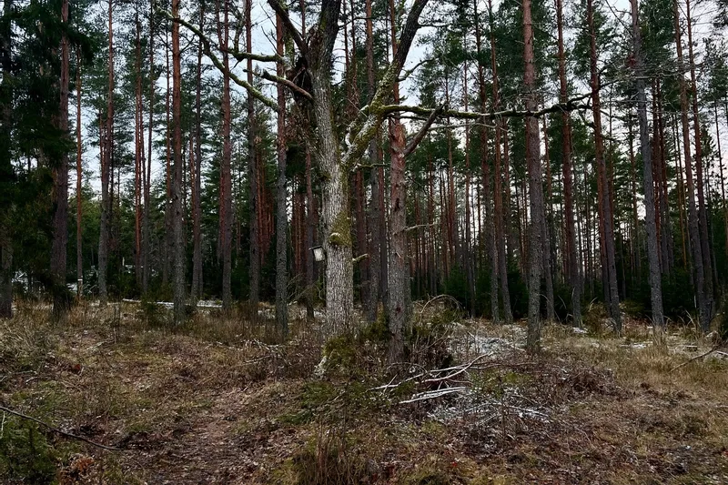 Eken och talltickan på den gamla tallen visar två viktiga naturvärden i skogen – gamla träd och de arter som lever på dem. De skapar livsutrymme för bland annat svampar, insekter och mossor och är exempel på varför naturvärdesträd är så viktiga.